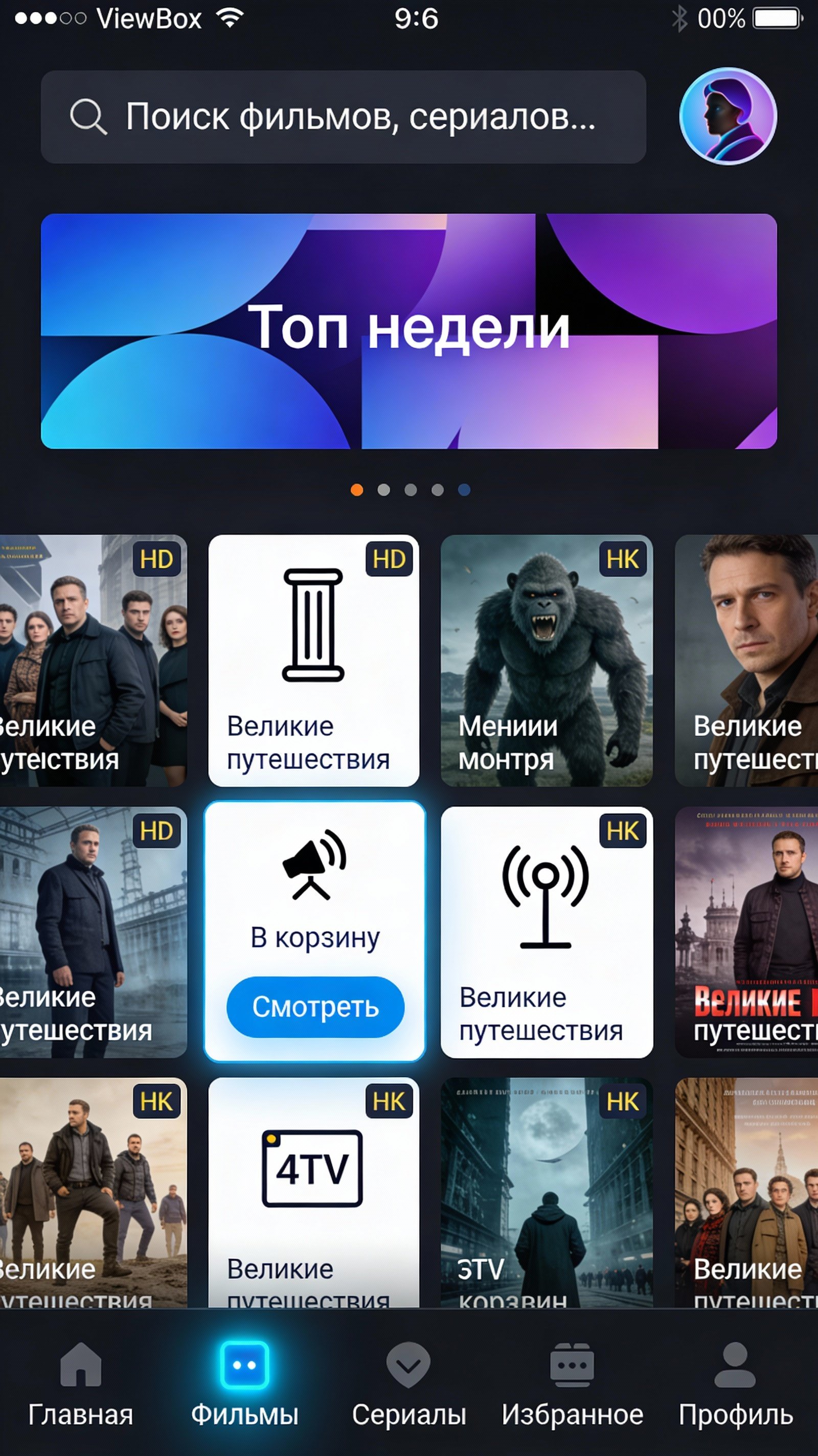 Минималистичный дизайн — никаких лишних элементов, навязчивой рекламы. Интерфейс сфокусирован на контенте, не отвлекает от просмотра.