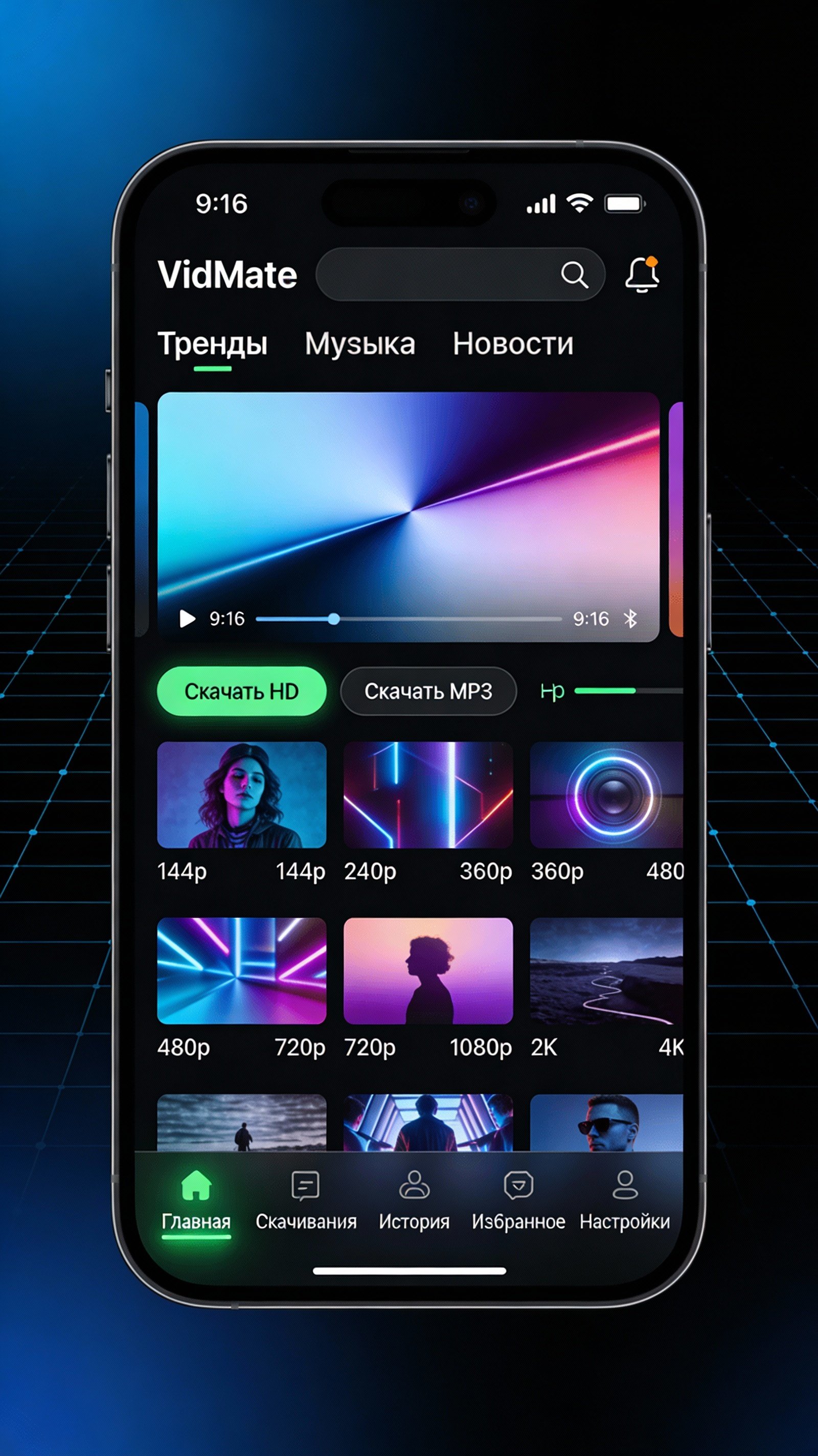 Загрузка в различных форматах, качестве. VidMate предлагает гибкие настройки скачивания. Пользователь самостоятельно выбирает разрешение видео — от экономичного 240p до Full HD 1080p, выше. Также доступна функция извлечения аудиодорожки, сохранения в формате MP3, что особенно удобно для любителей музыки.