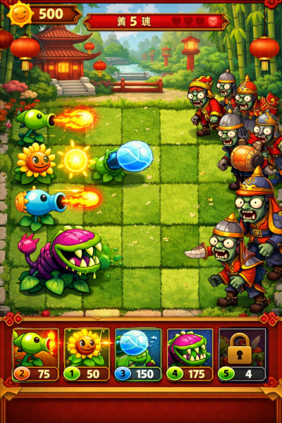 Комбинируйте растения с различными типами урона. Некоторые зомби уязвимы к огню, другие — к холоду, третьи — к электричеству. Арсенал позволяет эффективно справляться с любыми волнами противников.